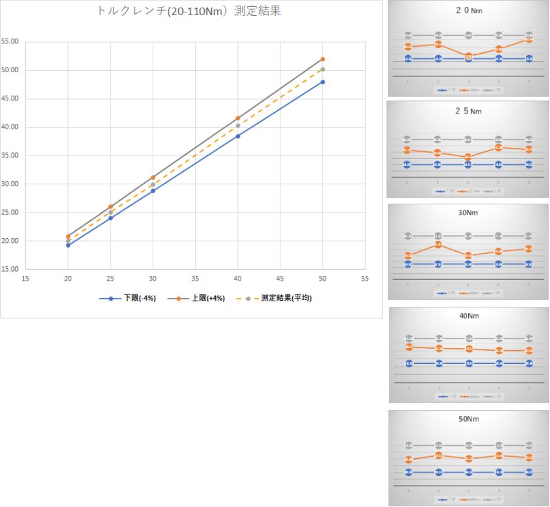 低トルク範囲は若干ばらつきが大きそう。25Nmまでは5-25Nmタイプを使用するのがよさそうです。