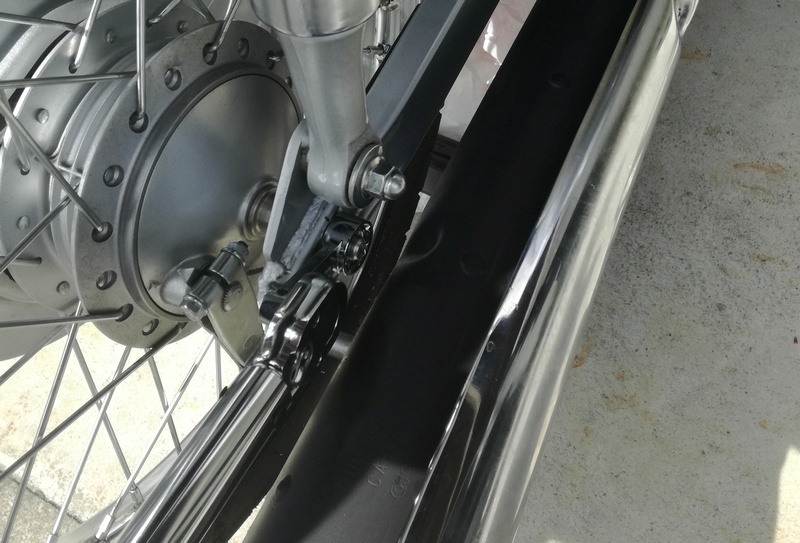 今回は、リアアクスルシャフトグリスアップやチェーン注油、ドリブンスプロケット防錆、前後ブレーキ遊び調整もあわせて行いました。