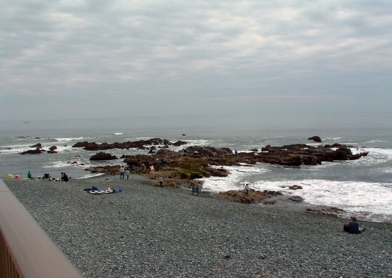 港の隣の照ヶ崎海岸。子供連れ家族が磯遊びしてました。