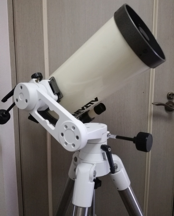 年代物の望遠鏡ですが、経緯台にのせることで、お手軽ベランダ観望用のメイン機材となっています。
