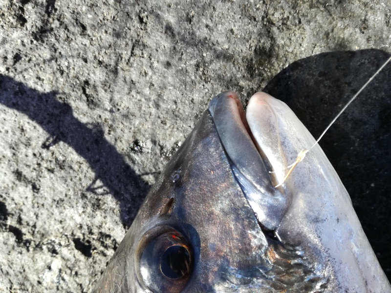 魚体がようやく見えました。ボラでもなくアイゴでもなく、まさかの銀色に輝く本命です。