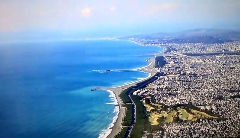 取材ヘリの空撮から、茅ヶ崎付近の穏やかで澄んだ海の様子がわかります。