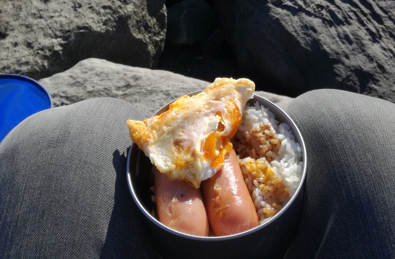 こんな時は、持参した折りたたみチェアにゆったり座ってお弁当タイムです。