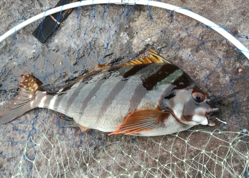 夕方までねばって、ようやくタカノハダイが釣れました。(30cmぐらい)